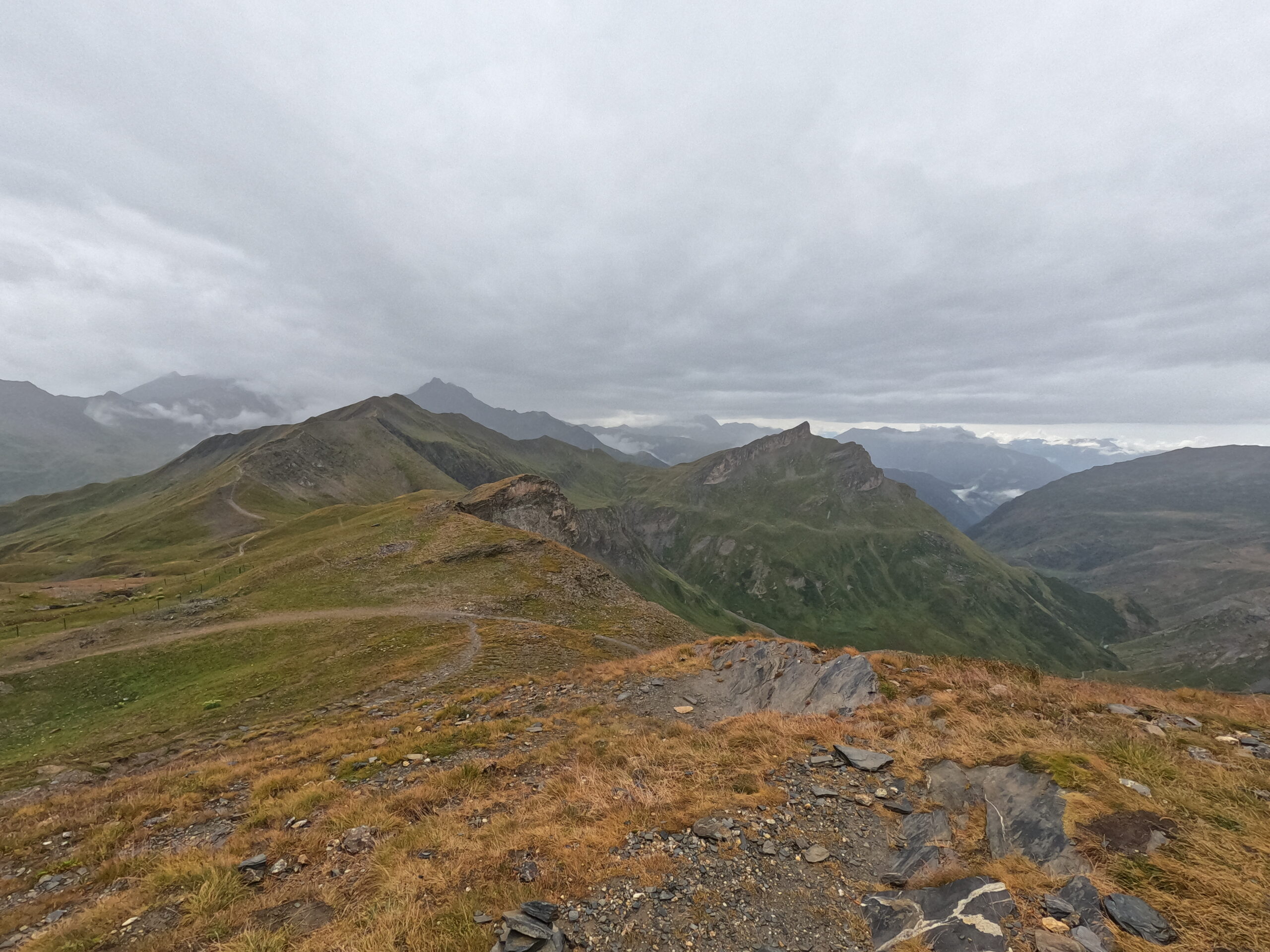 Malgré la météo les paysages dans cette ambiance nuageuse sont magnifiques, et les quelques sommets que l’on aperçoit furtivement nous mettent en appétit..